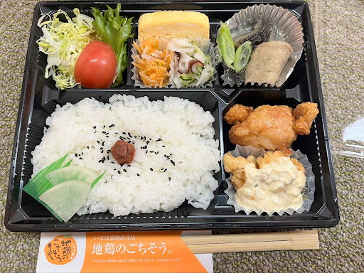 地元の大好きなスーパー保内ショッパーズさんの駐車場側は入り口に陳列されている地元のお弁当や惣菜で知りました。 そこで唐揚げや手羽先を買って身内に持って行くと絶賛👏 それからお店を調べて行きました。 Google情報では店内で飲食メニューがありましたが、令和4年7月現在では購入したお弁当は店内で飲食できるみたいです。 接客も丁寧で、お水も出して下さり大満足です。 体に優しい農家さん直営?地元の鶏などとても美味しく一緒に行った身内も絶賛。次回からはここで買い物すると言ってました。