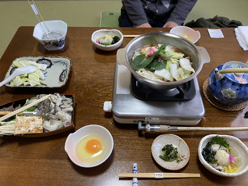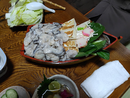 毎年、牡蠣の季節しか営業されてない「かき広」さん。 一度お邪魔したくて、ちょっと寒くなってきた夕食に伺いました。 酢の物、牡蠣鍋、牡蠣フライ、土瓶蒸し、そして牡蠣の釜飯のコース。 土瓶蒸しは追加料金で松茸を入れて頂けるとの事で、松茸の土瓶蒸しにしました。 お店は四日市の歓楽街にありますが、まだまだコロナの名残りで街はとてもひっそりとしていました。 昭和の雰囲気を感じさせてくれるお店。 入ると同時に大将はじめ、仲居さん方がとても気持ちよく「いらっしゃいませ」とお声掛け下さいました。 2階の個室も家族3人に丁度良い広さのお部屋で、予約していたのですでに牡蠣鍋がセットしてありました。 その牡蠣の量がハンパない! 小ぶりながら、こんなに食べられる?と思える量。 牡蠣の酢の物を頂き、その後牡蠣フライ、牡蠣鍋と続きました。 酢の物は、ちょっとお酢が強いかな…。 牡蠣フライは揚げたて、タルタルソースも付いていて安定の美味しさ。 そして牡蠣鍋は、お味噌ベースのお鍋です。 すき焼き風に頂くようで、卵をといて牡蠣を付けて頂きました。 見た目、凄く濃い様に感じましたが、食べてみると丁度良い加減でした。 こういう牡蠣鍋の食べ方もあるのか、とお勉強になりました。 そして、土瓶蒸し。 松茸が食べたくて追加オーダーでしたが松茸はちゃんと入っていたにもかかわらずお味はほとんど感じられず、そこはちょっと残念かな…という感じでした。 最後の牡蠣の釜飯はホカホカで美味しかったです。 そのまま頂き、その後はひつまぶし風に薬味でお出汁でと、3通りの楽しみ方が出来ました。 ですがもうすでにお腹いっぱいで、少しだけ頂き、あとはお土産として包んで頂きました。 家で翌日に頂いた時のほうが、より牡蠣のお味が深く感じられて、ま...