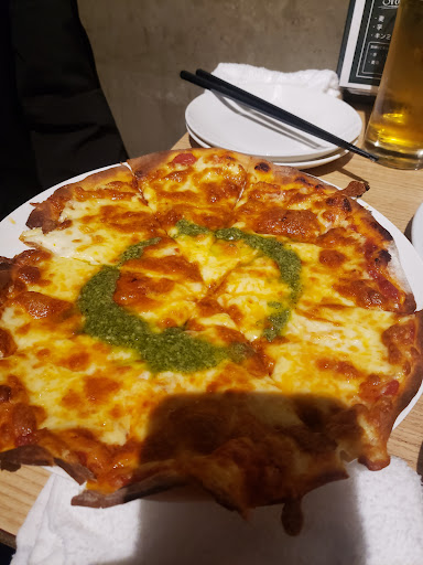 薄めのクリスピータイプのピザ🍕 お一人様ワンドリンク制とチャージ料300円はかかりますが、それでもお得🉐