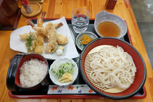 メニューは天ぷら定食をざるうどんで注文。お料理の提供は非常に早かったです。麺はやわらかめで、締めがしっかりされており喉越し良好。つゆも鰹の旨味が出ていて美味しかったです。天ぷらの品目は海老3尾・かぼちゃ・大葉の5点。ご飯と香物も付きますがお値段はかなり安価でした。