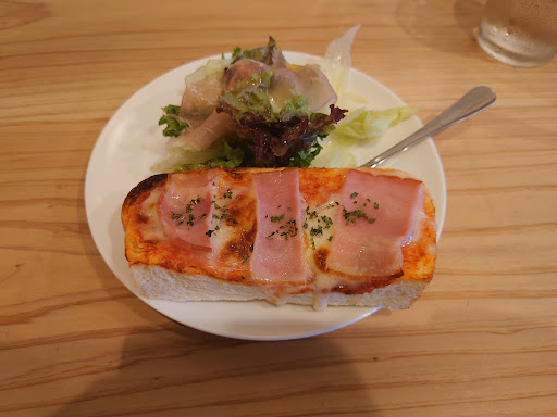 メニュー見て驚き!ランチのみ営業でメニューは少ないのですが、激安!! 日替わりパスタ 650円 (この日は、南瓜·ベーコン·しめじの冷製クリームソース) ミートソース 800円 辛子明太子のクリームソース 950円 カルボナーラ 950円 それら全てが、ピザトースト(4ツ切?5ツ切?のハーフ)とサラダ付きの値段。 大盛は1.5倍 +200円との事。 私は、+100円のドリンク(アイスコーヒー)をつけましたが、こちらも結構な量。 ティラミスとドリンク付きだと+350円。 雨の日はドリンク半額との事。