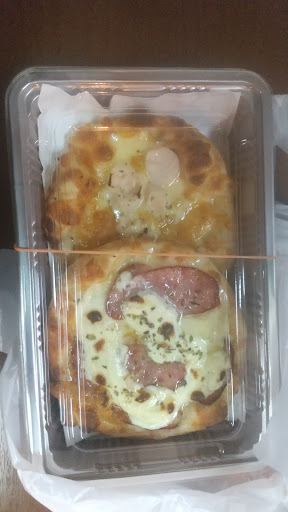手のひらサイズのピザで燻製ソーセージのピザ + チーズ + クリームチーズのピザ(350円) ヤシの芽とチーズのピザ...