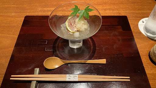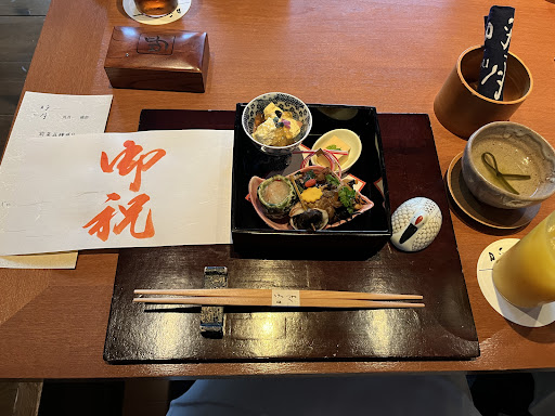 Read more一つ一つが丁寧な仕事です。 四日市で有名な日本料亭とのことでお伺いしました。 予約時にお電話口ではありましたが、とても丁寧な接客で好みやアレルギーの有無などのリクエストに答えてくださいました。 当日は雨だったのですが、店先の照明が地面を反射し喧騒がかき消され、裏道から隠れ家のような通路を入り、一気に非日常感に誘われました。 店に入ると、早速個室へと案内されました。 雰囲気のある掘りごたつの部屋で、ゆっくり食事を摂ることが出来ます。