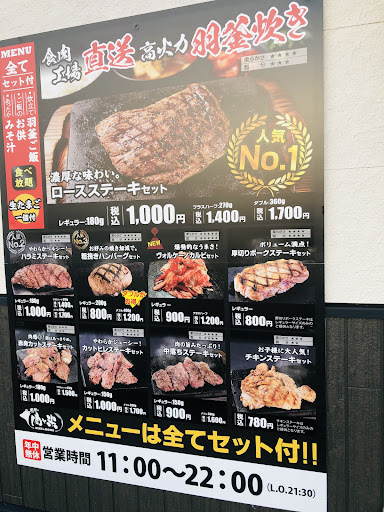 入店してすぐの端末に注文し会計を済ますとカウンターの注意書きに「トレイなどを用意して“お待ち下さい“」の表記。 肉を焼く間、地蔵のように待てと? と、考えているうちに焼き上がった肉が提供。この間、僅か1分。