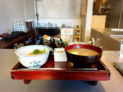 Read moreどうしてもお米が食べたい時に、強くオススメしたい。 ランチにお邪魔したが、おにぎりとお茶漬けが置いてあり、味噌汁や小鉢もついてくる。おにぎりの具は、変わったものもあれば定番と揃える。 おにぎりを選んだが、塩気も絶妙で、握り具合もちょうどいい。メインの鳥肉もおいしくて…もう、全部美味しいしか言えない。 ここでは、ハサマ共同製茶組合さんのお茶が飲める。特に、和紅茶がオススメだ。 近年、流通量も増えたが、和紅茶が飲めるお店はまだまだ少ない。そんな中、和紅茶が、しかも地元のものをいただけるお店なんて、最高だ。 近所にあったら通う。とにかく、おいしい。そんなお店だった。 駐車場はあるが、店内はそんなに広くないの...