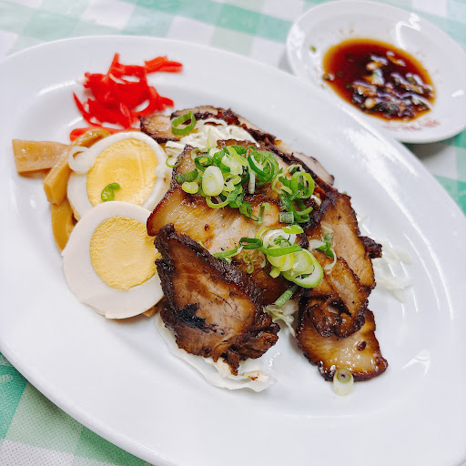 ランチセットの中華飯と醤油ラーメン、それに 餃子を注文してみた。 餃子は至って普通だが 例のニンニク油を加える事で激変して旨くなる。 醤油ラーメンは、縮れ玉子麺で中華飯のスープ にはもってこいだが、それ以上の物ではない。 中華飯はほぼ白菜だけのシンプル飯 (笑) まんま昭和の町中華でした...