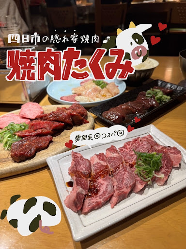 🔖焼肉たくみ @三重県 四日市 ──────────────────── □上タンー¥1,650 □熟成サガリー¥770 □旨塩盛り合わせー¥1,980 □熟成ハラミー¥770 □ホルモンミックスー¥1,540 □レバーー¥770 □ハラミユッケ3種盛りー¥1,430 □鮮度×安心のゴマ塩レバーー¥1,100 □センマイ刺ー¥880 □たくみサラダー¥660 □冷麺ー¥990 □ライス中ー¥380 ────────────────────
