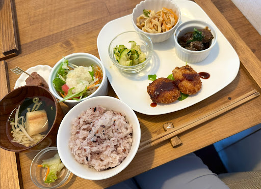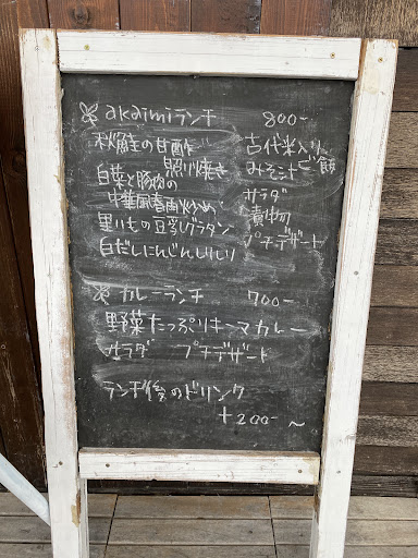 Read moreアカイミランチが900円、カレーランチが800円でした🍽 今回頼んだのはアカイミランチ(メニューは週替わりに海老のクリームコロッケ)で、お野菜メインのランチなので女性向けかもしれません。 チーズケーキとマフィン(それぞれ250円)も週替わりで、店内の大きな黒板にメニューが書いてありました。他にもプリンやクッキーもお値打ちでありがたかったです…︎✿ 雰囲気も良く、店主さんも穏やかにお話をしてくださっていたのでまた来たいと思えるカフェでした♩なのでメニューが週替わりなのも、また今度来る時の楽しみになっていいなあと思います。 本を読んでいらっしゃるお客様がいたり、本棚が置いてあったりして、ゆっくり寛げるカフェと...