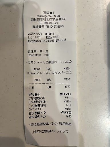【悪い点】 ・接客 今まで溜めていたスタンプカードと、カードを忘れた際にスタンプ押してもらったレシートを持参。両方合わせると割引券に変わる量のスタンプが溜まっていました。 レジでお会計の際にカードを提示すると、後ろでパンを袋に詰めていたスタッフの方に「こちらはもう使えないので、処分しておきますね」と取られました。 (2025/10/25...