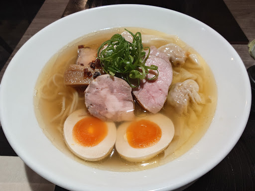 âChashu noodle with wonton and Ajitama topping Unbelievably delicious ramen. There is nothing to be stuck in your mouth, and it goes into your body smoothly. The mildness of the soup, the temperature, and the texture of the straight thin noodles are all in harmony. The five kinds of pork and chicken chashu are superb in thickness, tenderness, and flavor. One of the three best...