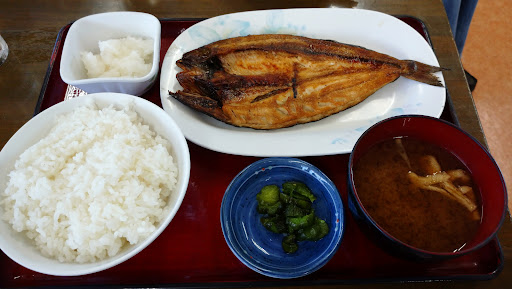 Read more向かいのまぐろレストランには数回訪問。 こちらは買い物だけで食事はしたことがなく初めて飲食で訪問しました。 向かいのまぐろレストランは大盛況でしたが、こちらも11:30でほぼ満席でした。 まずこちらの注文方法から説明。 好きな魚をざるに盛り、定食にするか単品でうどんやカレープラスにするかを説明。 番号の紙を受領し、後は好きな席に座り水等はセルフです。 焼きが待ち時間になりかなり時間がかかりそうなので、おでんを注文。 これも窓口で番号の紙を見せる必要があります。 私は好きなこんにゃく、嫁さんは大根で、味噌好きな家族は味噌をかけましたが、醤油で煮てあり味はついています。(税込各100円) メインは20分程かかり登場。 選んだのは嫁さんは「サーモンハラス」(税込700円)、私は黒ムツがなかったので「礼文産縞ホッケ」(税込450円)に「カマ」(税込700円)を選択し、定食(ご飯中盛、味噌汁、漬け物)がつきプラス350円です。 縞ホッケは小さめで脂もいまいちでしょうか? 美味しかったのはサーモンハラス。 大きくて半分に切ってあり半分貰う。 皮と身の間の脂が最高(笑)。 こちらはすごく美味しかった。 カマは何のカマか表示が‥。 これもまずまずです。 生卵や大根おろしは受取口横の冷蔵庫に用意。 値段の表示もなく、冷蔵庫から出しますよと断りを入れ店員さんに見せましたが請求はなかったのでサービスなのか?不明です。 暑くなりちょっとしょっぱい干物が恋しい時期になりました。 子供の頃はおかずが魚だと損した気分になりました。 大根おろしが辛くなく残念でしたが味はいい。 帰りに返却口に食器を戻しますが、レジと注文口の奥にあり、動線には人がかなり蜜になってまたその距離がわずか3メートル位。 これはなんとかしてほしい。 帰りは20人程が入口に蜜状態でかなり混んでました。 焼鯖干物寿司(税込700円)も土産で買ってきました。 分厚く生姜が挟まり美味い。 以前みたいな切り落としの格安干...