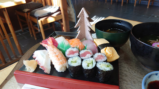 Read more日曜日のお昼に行きました。入るとカウンター席が目にはいります。女性客が一人カウンターにいましたので、離れたカウンター席を利用しました。 お昼メニューは「中すし」を選ぶと、そばとうどんの選択もできます。食後のコーヒーもついてきます。カウンター女性客はお酒も飲んで正月らしい感じで、自分も飲みたい気分でした。 そんなかんじの落ち着いたお店で、一人でも楽しめます。 そばは出汁がおいしく。味噌汁は魚の出汁がでてこれもおしいです。 食後のコーヒーと手作りようかんも付いてきます。