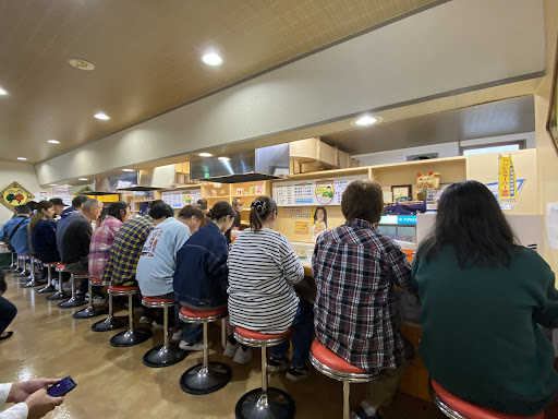 Read moreロケーション 四日市市街地から柳通りを西へ。 非常に目立つのですぐにわかるかと思います。 駐車場は15台分くらいはありそうですが、狭い。 特に、待っている人が多く接触に注意です。 外観、お店の雰囲気 梅雨入り前の晴れた日曜日に訪問。 混んでます。見た目は独特ですね〜。 リストに記入して待ちます。8組待ちです。 25分ほど待って、店内に呼ばれます。 店内でまた椅子に座って待ち。5分程度で着席。 回転は悪くなさそう。 カウンターには麻雀牌が埋め込まれている。 不思議だ。 接客 接客というものがそもそも存在しないシステム。 これはこれで面白い。 注文したもの 食べ物は餃子だけ。 飲み物を頼まなければ注文そのものが存在しない。 席に着いた瞬間に、餃子がカウンターに! カウンターには麻雀の点棒が一緒に置かれます。 一皿目ってことですね。 牛乳と一緒にというのが有名です。 しかし、地元の方で牛乳を頼む方は皆無。 ここは純粋に、餃子の味を楽しむことにしました。 見た目、味 小ぶりな餃子が8個。 熱々のパリッとした餃子です。 タレが一緒に付いてきます。 テーブルには刻みニンニクのラー油漬けあり。 これをタレに入れて食べます。 うん、これは美味しい。 新味覚とありますが、非常に懐かしい感じの餃子。 開店時は新しかったのかな? 追加注文するときは空き皿をカウンターに。 すぐに追加の餃子を載せてくれます。 一緒に点棒も追加。面白い。 コスパ 餃子420円。普通に考えれば決して高くない。 今回2皿で840円。安い。 ただ、私のように食べる人は大変。 感じですが4皿くらいはペロリではないかと。 実際皆さんそれくらい食べてました。 私はここに行く前に、チャーハンを食べてます。 餃子だけで満腹にするには大変だと思ったから。 コスパ、そう考えると微妙ですよね。 総合 なんでこの辺りはこういうお店ばかりなのかな。 今回も星3つと4つで悩みました。 結果3つです。味は申し分なく4つですね。 餃子のレベルとしてはかなり高い。 浜松あたりの有名店と遜色ない。 しかし、待ち時間や餃子以外のメニューがない、 などから3つにした次第。 ただ、先述の通り味は申し分ない素晴らしいお店。 ぜひ行ってみることをおすすめします。 なぜ点棒を使うかは謎です。 お店の方からも明確な回...