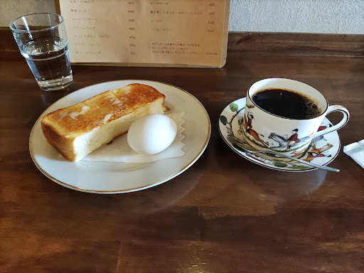 店内ですが2人掛けが3つと、あとはカウンター5席ほどの小さなお店ですが、コロナ禍でもほぼ満席。 客層は老若男女問わずって感じです。 。 コーヒーは深煎りをチョイスしましたが、美味しい。 モーニングは半トーストとゆで卵とシンプル。 バター、ハニー、シナモンと選べます。 これで400円(税込)でした。 お店の方はどう思っているか知りませんが、ここは子連れはおすすめしません。 大人の隠れ家的喫茶店で、本を読んだりスマホ触ったりと静かにくつろいでいる感じが伝わってきますので・・・・
