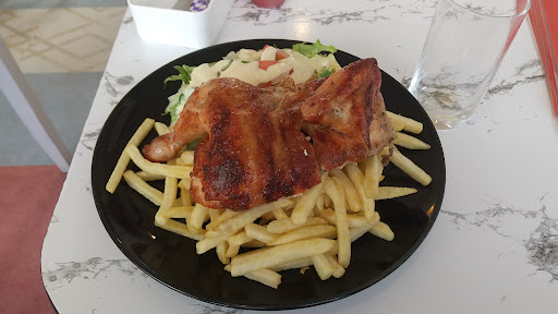 ◯1/4ローストチキン(1100円) フライドポテト、サラダ添えで、チキン4分の1でも食べ応え十分で美味しい。チキンは良い感じのスパイス。 ケチャップ、マヨネーズ等の調味料あり。