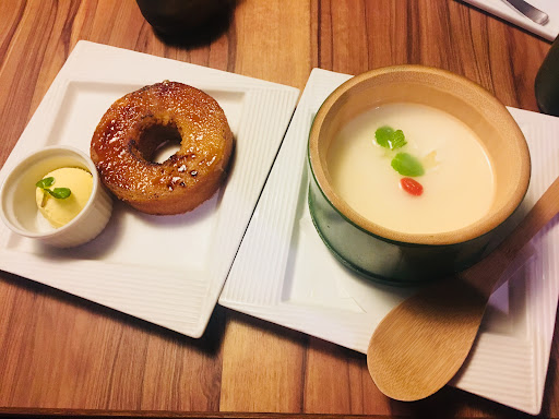 ティラミスにはキナコがかかっており、黒蜜との相性も良し。
