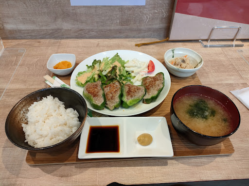 ここで昼食を食べる場所を探していたらたまたま発見したのでお腹がかなり減っていました メニューを見ると肉詰めピーマンが日替わりランチでしたが、ハンバーグが食べたくて我慢 結局煮込みハンバーグセットを注文♪ むむ、美味しそうだが大人の男には少し小さいか?それでもサラダに小鉢もありギリギリセーフでした ただご飯のお代わりも出来るとの事でしたが肝心なハンバーグは少し小さいので直ぐに食べきりご飯が余るのでお代わり無し でも、ハンバーグは肉でギッシリして美味いし、煮込みのソースも美味いのでもっと食べたくなるので困った(^_^;) 価格は全体的にちょい高め💦 料理は美味しいが、量が少ないし、価格はちょい高めでインフレ時代は辛いね🙄 女性にはもってこいのお店だね