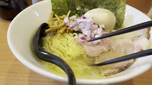 Read more豚仙人・こころなどラーメン店が入りがちのテナントに、新杉田の汐星が復活したと聞いて土曜昼お邪魔しました。まずお水が美味しくて期待が高まります。 シンプルに塩か醤油、後はトッピング・丼のみ。得塩らぁめん¥1000をお願いしました。 澄んだ塩スープは複合的な出汁に甘味が結構効いています。麺が謎の多加水中細角麺で、個人的にはやや多かったです。豚肩チャーシューと思われるものはジューシーで最高でした。細切りめんまも下味がついてて大変良いです。他に海苔・煮卵・紫玉ねぎがのっており、得トッピングがお得すぎて頼まない手はないです。 新店なのに旧500円旧千円にしか対応しておらず、ワンオペの大将が大変そうでした。 ごっつり学生街ラーメン店ばかりの界隈に淡麗の選択肢ができてありがたい限...