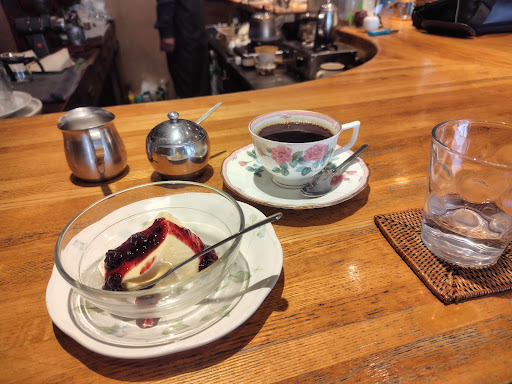 Read more長くやられている地元密着の喫茶店です。焙煎機もあり自家焙煎コーヒーが頂けます。平日の午後、ふらっと伺ってみました。チーズケーキのセット税込900円を頂きます。コーヒーはホットもアイスも選べます。ホットは好みが聞かれ重めで注文。 オーダー後に豆を挽いて淹れていました。コーヒーは個人的にはもう少しコク、苦めが好きでしたがセットのコーヒーなので仕方ないところでしょうか。チーズケーキは自家製か、なかなか美味しかったです。特にBGMも無く、常連さんのデカい声が気になり一見には少し居心地が悪く感じたのが残念。こればっかりはタイミングですかね。なおお店でコーヒー豆も購入可...