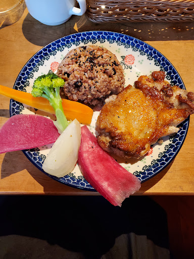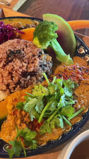 Dined here after 1 pm on Friday, and we called the cafe before leaving because we wanted to make sure it’s not full. We were seated right away. Since it was hot and humid, we sat indoors where air-conditioning was fully on. Placed an order using a QR code, which was fairly straightforward. We waited a bit for our orders, and we were very happy when we were served. I believe it took a bit of time because our vegetables were freshly steamed. Other reviews mentioned about not having dressings, but i thought that it was fine because we were able to enjoy the veggies as they are supposed to taste. I enjoyed both curry flavored, btw. My sister ordered “Kikori” curry, and she likes it. We then ordered pistachio & orange waffle, affogato and herb tea. The waffle was on the crunchy side, but the flavor of the honey (it’s a special honey!!) We never heard of “sour honey,” which, I understand is created through the natural fermentation process. I was quite happy with...