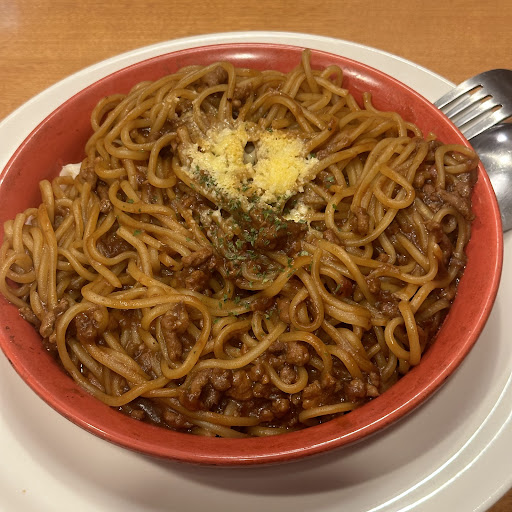 ロイホ以来に来店。 1人だったので、カウンター席に座り ミートソースとサラダ/ランチスープのセットを注文。 おかわりし放題のランチスープを取りに行っている間に 飲みかけの自分の水が片付けられており タッチパネルのメニュー表も初期状態に戻されていた。 非常に驚き。客が座った位置やオーダーが来た位置を覚えていないのか。。