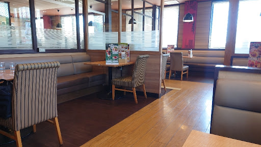 Read moreランチに利用しました。 チェーン店ですのでメニューの事はあえて外します。 交差点の近くにある建物です。1階は駐車場となっています。 階段を上がって2階の入口から店内にはいります。 入口から入るとレジが正面にある、ありがちなレイアウトの店舗です。 午前11時30分くらいの入店でしたが、店員さんさら「お好きな席にお座り下さい」と、空いていれば自由にどこでも座れます。 比較的に広いフロアかと思います。 窓側多いので広く感じます。 平日のこの時間では7割方空いていたのて窓側を選んで座りました。 こちらの店舗ではクロちゃんが2台で働いています。 ランチでは、従業員の方も配膳をしておりました。 どの業界でも人で不足ですが、こちらの会社ではロボット使って頑張...