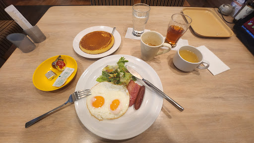 パンケーキげきうま! 子どもの時に食べたホットケーキに似てると思った。加熱方法知らんけど、食感外はサクッ、中はもっちり。ジョナサンのパンケーキよりうまい?