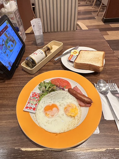 Read moreOrder by tablet so in English but all the food has photos. Unlimited drink bar. Coffee was weak but passable for free. Cheap American slash Japanese...