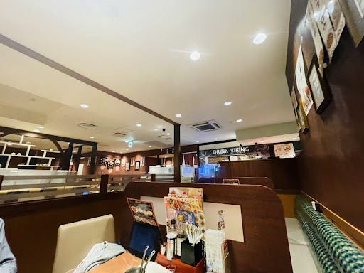 夜で空いていたからか店員さんもお皿をサッと下げてくれるし感じも良かったです。駐車場も広くてテーブルも広くコンセント有り。