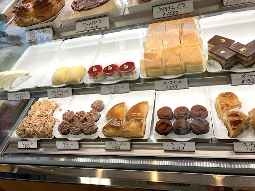 ショーケースには色々な種類のケーキが並んでおり、洋焼き菓子や食パンもあります。