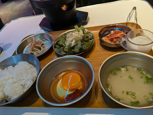 プルコギのコンロは固形燃料なので必要以上に強火にならず、食べるペースでちょうど火が通る感じが良かったです。鍋の形が脂を適度に落として美味しく食べやすくしてくれるものでした。味はプルコギの甘めの味付けが良かったです。 サラダのごま油ドレッシングはたいてい定番で使われる味付けですが、確実に美味しく安心できる味付けでした。 白髪ネギは生卵を溶いてプルコギにまぶすと共にご飯に載せて食べました。美味しくいただきました。 並と大がありましたが、定食のみでお腹が空いている人は大が良いと思います。