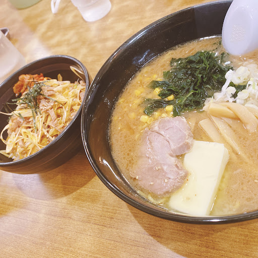 黄色い中華麺でわかめやネギを絡めてずるずる^.^ 正直味噌としょうゆの違いがあまりわかんなかったけど味噌バターコーンは安定の旨さでした。