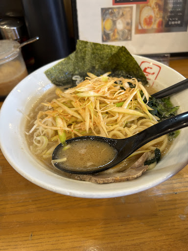 ラーメンは830円。どちらかといえばお安い方かなー。 私の注文はネギラーメン1,080円 標準に比べ250円もアップ?! そこはちょっとお高いかなー。 でも辛味ネギは家系ラーメンのお供に欠かせない私。(提供のない店舗もありますけど・・・) 迷わずのチョイスでした。 そうそう、券売機でなく、席で店員さんに注文するスタイルもいい。 カウンター席もありますので、一人で入ってきやすいです。 現に女性一人もいましたから。