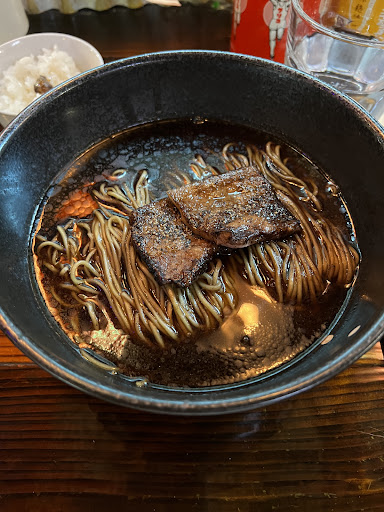 2回目 事前にYouTubeで動画をたくさん見て、ぶっきらぼうに見えたけど実はお茶目な大将だったんだなと思いながら心を弾ませて訪問。 注文したのは動画で見た限定の担々麺。動画のクオリティも高く、これだけこだわりのある大将のラーメンなのだから美味しいだろうと思い楽しみにしていました。もちろん、前回大好きになったミニチャーシュー丼も。前回はこれが美味しすぎたのでミニじゃないやつも頼もうかと前々から悩んでいましたが、今回は高めの限定を頼んだのでミニチャーシュー丼にしました。