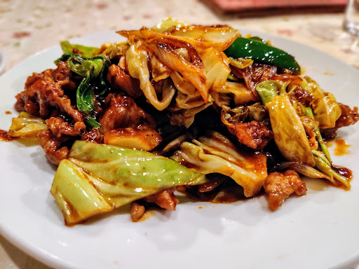 回鍋肉とライス、杏仁豆腐を注文すると、最初に小皿にのった麻婆豆腐が運ばれてきた・・・普通に辛いが、味付けは気持ち薄めに感じた。回鍋肉はキャベツ、ピーマン、長ネギ、豚肉という普通の日本式の構成で、味付けは自分にとっては少しだけ濃い目か。麻婆豆腐に比べると辛さはほとんど感じられず、甜麺醤の甘さはある。豚肉は豚バラだろうか。780円にしては量もあり、味付けも美味しいと思う。