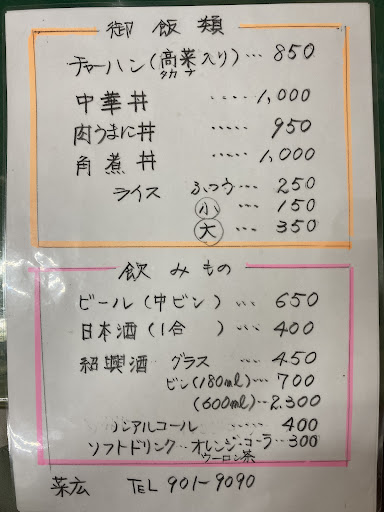 入店してみると外観のイメージ通りの町中華感があります。店主が一人でやり繰りしているのか、他の投稿で見たメニューより少なくなっていました。