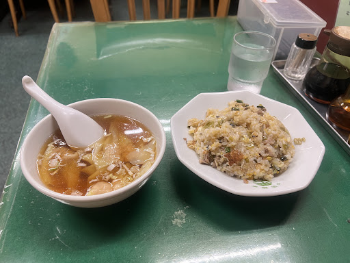 チャーハン 半ワンタンのセットと餃子を頼みました。 餃子は頼むときに「形が悪いけどいい?」と店主さん、変な事を聞くな…と😓 1皿 4個のようなのですが、失敗したのか「1個形悪いけど良ければ食べますか…」と、皮が破れた餃子をサービスしてもらっちゃいました。 ニンニクが入ってないので物足りなさは有りますが餡は肉が多く肉汁滴る、そんな大き目の餃子。