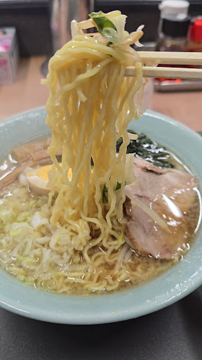 Read more仕事でちょくちょく来る地域ですが、初めて存在に気がついて来店です。手前の蕎麦屋さんは何度か入ったことあるけど、気がつかなかったなあ。 建物は工業団地の組合ビルかな?その建物の1階ってことで社食っぽい雰囲気で、ジャンル的には町中華食堂になるんだろうね。 でもでも、味の方はその分野のなかでは美味しいです。ラーメンをいただきましたが普通の醤油ラーメンではなく、醤油ベースで豚骨風味な感じで脂多めです。臭みは感じずあくまでも風味。きざみネギが多めでバランス取れています。 チャーシューはビジュアル的には○ですが、後に残る匂いは工夫が欲しい。食感は柔らかくて良いです。 工業団地のこんなところにラーメンが食べられる食堂があ...