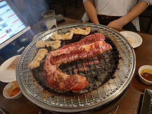 20220527 久しぶりに行って来ました。最初期と比べて多少品目が減ったかな? まぁよく出る部位に絞った感じなので特に不満は無いですが(笑) 大きく変わったのはオーダがタブレット端末からになった事と肉の注文が1枚単位では無くなった事ですかね。それでも2枚か4枚なのでお腹と相談しながら食べられます。全長20センチ位の韓国式カルビや骨付肉はハサミで切って頂きます。脂が大丈夫なら和牛ホルモンやシマチョウは絶品ですよ。コリコリとして食感が楽しいのがガツシン、サッパリ目でいくならタンかロース、ミスジ辺りです。あと鶏もイケます。ヘタなチェーン店行くならココの方が絶対満足出来ると思います。
