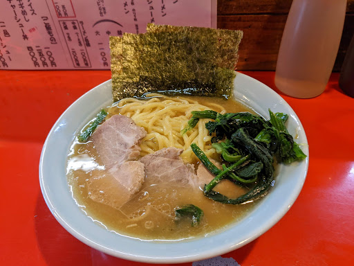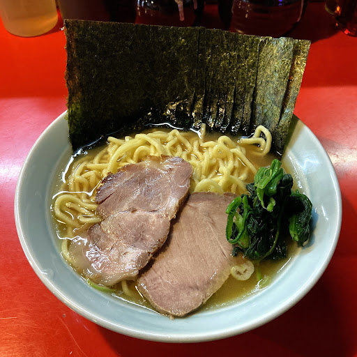 Read more老舗の家系ラーメン店で未訪の為伺いました。 外待ちも出来ており期待が高まります。 10席程のカウンター、テーブル3席と中々広い店内ですが2名で回されていました。 ラーメンのメニューは絞られていますが、 サイドメニューに餃子もあり、会計は券売機が無いので会計の度対応されており中々大変そうです。 大変そうな中でも衛生面などに細かく気を配られている様子が有り細かな作業に味も反映されているだろうと更に期待が高まります。 オーダーはラーメン中 ネギ飯 硬め、濃いめです。 1ロット8名分を作っていきます。 人気店でわよくある光景ですが、 気になる点が発生します。 半分以上硬めオーダーにも関わらず全く麺揚げが始まりません。。。 既に普通か柔らかめ位の時間が経過中です。 麺揚げが始まったと思いきや折角の平ザル使用にも関わらずカウンターから見ていても湯切りが甘くスープにお湯がびちゃびちゃ入っています。 入店時の期待は何処へやら不安一択です。 その後もやっと麺揚げが終わったと思いきや、 ゆっくりと盛り付けされておりロット最後の私のラーメンが届いた頃には麺揚げされてから数分経過。 不安の中着丼しましたが、 案の定麺は柔らかめ通り越して伸びてました。 多加水麺かと思う程のぶよぶよ感です。 お陰様で腹持ちだけは良さそうです。 スープはカエシも弱く、出汁も弱く味が味がぼやけています。 お好み聞いて反映出来ないのであればお好み聞かない方が潔い良いし手間も掛からないと思います。 全体的に店の規模に対して店員さんの人数が追いついておらず悪循環な気がします。 人員を増やす、券売機導入、テーブル席を減らすなどして味の追求に集中で出来る環境を作った方が良いのでわないかと思います。 真面目に商売されている姿勢が見える為、 とても残念に感じます。 現状の味であれば近隣の近藤家、末廣家、とらきち家に行った方が美味...