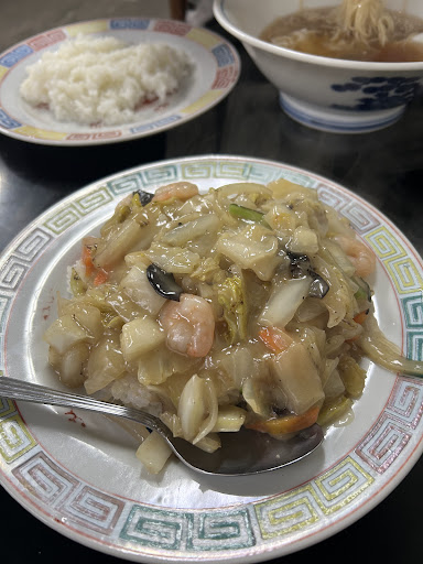 今まで食べた中華料理屋でまずいお店NO.1に入ったお店です。 ずっと気になっていたので、入りました。 その日は、お寺で厄祓いがあり、時間があったので。 安いし気になってたから、ワクワクしながら入った。 扉、開けると従業員が寝ながら座ってた 起きて、やってますよと言うので、席に座りました。 息子さんなのか分からないけど、とにかく騒がしい。なにか障害がある方なのかなとは思い、そこには触れませんでしたが。 ずっと同じ事言うし。面白いけど怖い思う人も中にはいるはず。 ちなみに、先払いです。 言われます。 お金は頂いてますので、大丈夫です 今作ってます。これを何回も繰り返してた 違う同じ言葉を繰り返しながら、奇声をあげたり、怒り出したり凄かったw 接客は明るくていいとは思うけどw 問題は味です。 一緒にいた、彼はラーメンで私はエビうま煮飯 口コミで見たけど、そのまんまだ うん、ご飯びちゃびちゃだった。 味はまあまあだけど ラーメンはまず水の味、スープが不味すぎたらしいです。 安いに裏はあるけど、初めてハズレたw 安い店他にたくさんあるけど、ここまでは居なかったなw最悪 厄祓いにきて払う前にも...