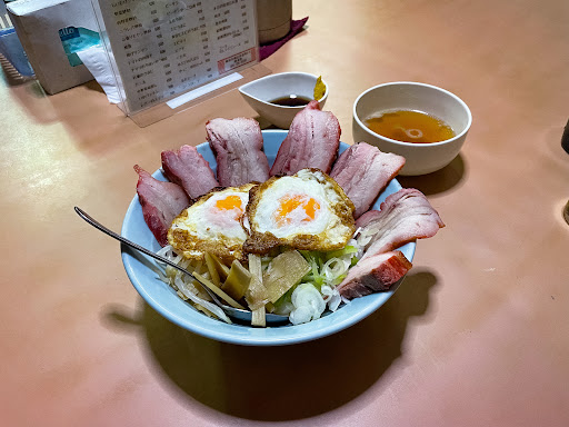 再訪問したら弟さんが辞めててワンオペ営業になってた。 メニューも混んでる時は酔来丼中心の営業になってて、でも空いてる時間ならある程度は融通きくみたいです。椎茸シューマイとか、軽く呑みたい時は、空いてるオープン直後かお昼時をずらして行けば良いみたいだ。 今回10時半に行ったらもう開店してた。 店内ガラガラ なので焼豚丼800円と瓶ビール550円を頼んだ。焼豚丼は、スペシャル酔来丼から目玉焼きとメンマを抜いた感じの内容だ。 ライスの上には焼豚7枚、薬味のネギもたっぷり盛られてる。そいつに辛子を解いた醤油タレを適量回しかけ、頬張るともう最高に美味しいのだ!とにかくここの焼豚は美味しい。 色々焼豚食べてるけど、ここのが1番好きだな〜 ちゃんと焼いてるし、だから香ばしくて、肉の旨味がギュッと詰まってて、白飯との相性は抜群なのだ。いやあ美味しかったです ご馳走様でした!