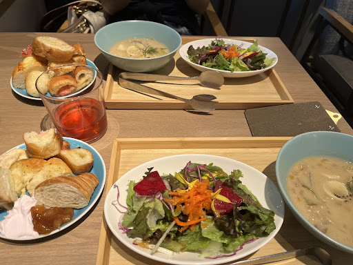 Salad dressing was great. My friend made a reservation for us and wasn’t aware that reservations require us to order course meals. We only wanted to order light main dish coz we wanted to enjoy the breads more. The waitress was kind enough to let us do that. All the bread were fresh. They replace one set quickly with a different set of breads. I felt bad I didn’t get more of the mentaiko bread. It was d best for me plus a few others. Will...