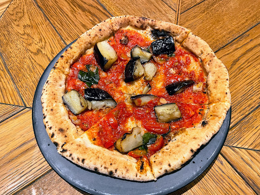 ◆マリナーラ/1518円/税込 ナポリタイプですかね。 ピザ生地は薄皮でモチモチした食感です。 そしてトマトソースは酸味あります。 トッピングの茄子の旨みがいいアクセント。 んんー、美味しいね。