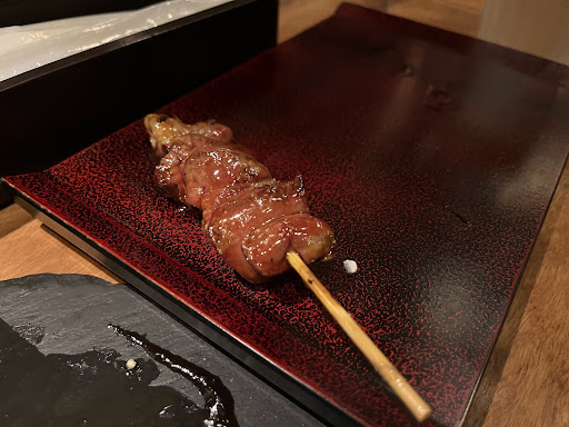 It is a wonderful restaurant, specialized in charcoal grilled chicken, beef and pork skewers. There are 3 outstanding points to be mentioned...1) delicious dishes with great quality, 2) attractive price and 3) friendly staffs. I seated by the counter where I had a nice view of the kitchen, and I was quite amazed how neatly the chef was handling sashimi and decorated perfectly. Craft beers were also good and well matched the dishes they served. I liked this restaurant so much and I will have to repeat if they change menu frequently (as there isn’t much selection other than grilled meat, which where by the way so...
