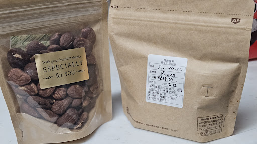 コーヒーも結構種類あります 202211時点ではゲイシャもありました、すげえ ナッツも事前に注文すれば炒りたてを頂けます。うめえ
