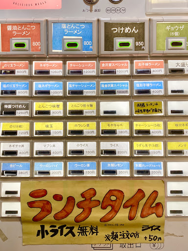 食券の種類を一瞥してみれば、醤油とんこつ・塩とんこつ・つけめんをベースにいろいろなサイドメニューやトッピングも揃っています。