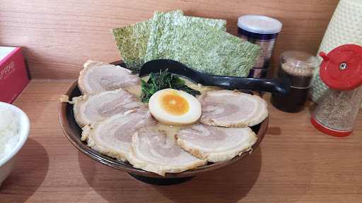 Read more結構好みの味で、濃いめの指定をすると味が濃いというより塩分高めの塩っぽさが増す感じ。チャーシューメンを頼むとチャーシューがスープを完全に覆う。 海苔とライスはもちろん、このチャーシューが凄ぇ業務スーパー感あるけどこれもライスに合うが、ランチタイムは小ライス無料でこの時間帯を狙うのが吉、ただ少ないので50円足してノーマルライスにした方がいいのと、あえて頼まないと出てこない(「ライスいりますか?」とか聞いてはくれない)。 海苔はそれほど高級なものを使ってるわけではないようで、ほっとくとスープに接触している部分は数分でスープに溶ける。 ノーマルでやや固めの茹で上がりのようで、固めオプションを頼むと固くなりすぎかも。 店内の女性店員は中国人のようで、店内を中国語が飛び交う、個人的にはそれ自体別に気にはならないけど、ちょっとお喋りが過ぎるかな、しかし問題はそこではなく、コロナ対策ほとんど皆無、カウンターにコロナシールドは一切なく、カウンターと厨房の間にわずかな透明ビニールが下がっているがこれは水場の水跳ねを防止するためのものではないかと思われ多分コロナは無関係、テーブルに消毒用アルコールなども見当たらなかった、この状態で喋りまくるのはどうですかね。 壱系に寄り切らない豚骨醤油な感じで、家系の中でもクリーミー感への振り幅が良い意味で思いきりが無く、このスープは結構好み。麺の量にケチ臭さがなく評価できるが、トッピング類がなんかすべて塊になってる感。トングでつまんでるからかもしれない、ほうれん草がブロックになってた。 酷評したけど個人的には悪くない、他人には勧められないけど個...
