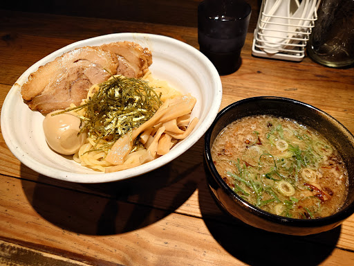 Read moreラーメン店です。家系じゃ無いです。開店当時に数回来ましたが数年ぶりに来店。暖簾に風格が漂っています。こちらで焼煮干しラーメンをいただきました。縦長な丼に具が綺麗に盛り付けられていて食欲をそそります。麺は中細、コシが丁度良く美味しい麺です。スープは焼煮干しがたっぷり使われていて、濃厚で粘土の高いスープ。旨味がすごく、焼煮干しの顆粒でややざらつきがありますが嫌な感じはありません。タマネギのみじん切りが入っているようで、それによってしつこさをうまく中和しています。厚めのチャーシュー、柔らかくてほんのり甘いメンマ、しっかり味がしみた味玉。口直しの海苔。美味しい一杯でした。後日、つけ麺をいただきました。私はヌルい麺が苦手なので「熱盛り」を指定。スープは「普通」と「濃厚」の2種類から選べます。私は「普通」を選択。こちらのつけ麺は全ての具が最初からスープに入っているので、他店のように冷えたメンマやチャーシューを後入れする必要がなくスープが冷めません。なので最後まで美味しくいただけました。美味しくて麺があっという間になくなったので麺を増せばよかったかなー。店内はL字型のカウンター席のみで、水はセルフ。カウンターに水のピッチャーが置かれてないのでそこがやや不便ですが、ラーメンが美味しいので我慢しましょう...