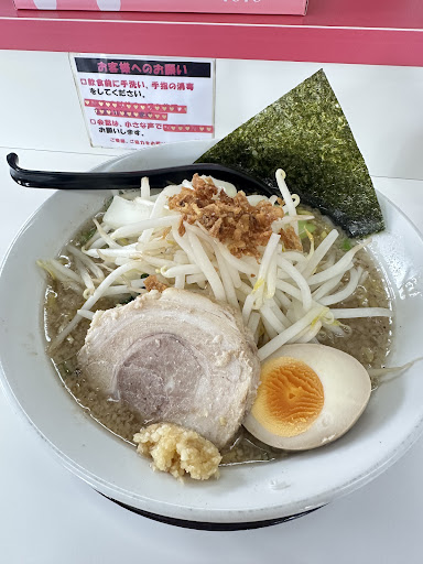 「ニンニク入れますか?」と聞かれたりヤサイの感じとか見る限りはラーメン二郎っぽいけど、太麺でもなく脂も少ないので味はまったく違う。